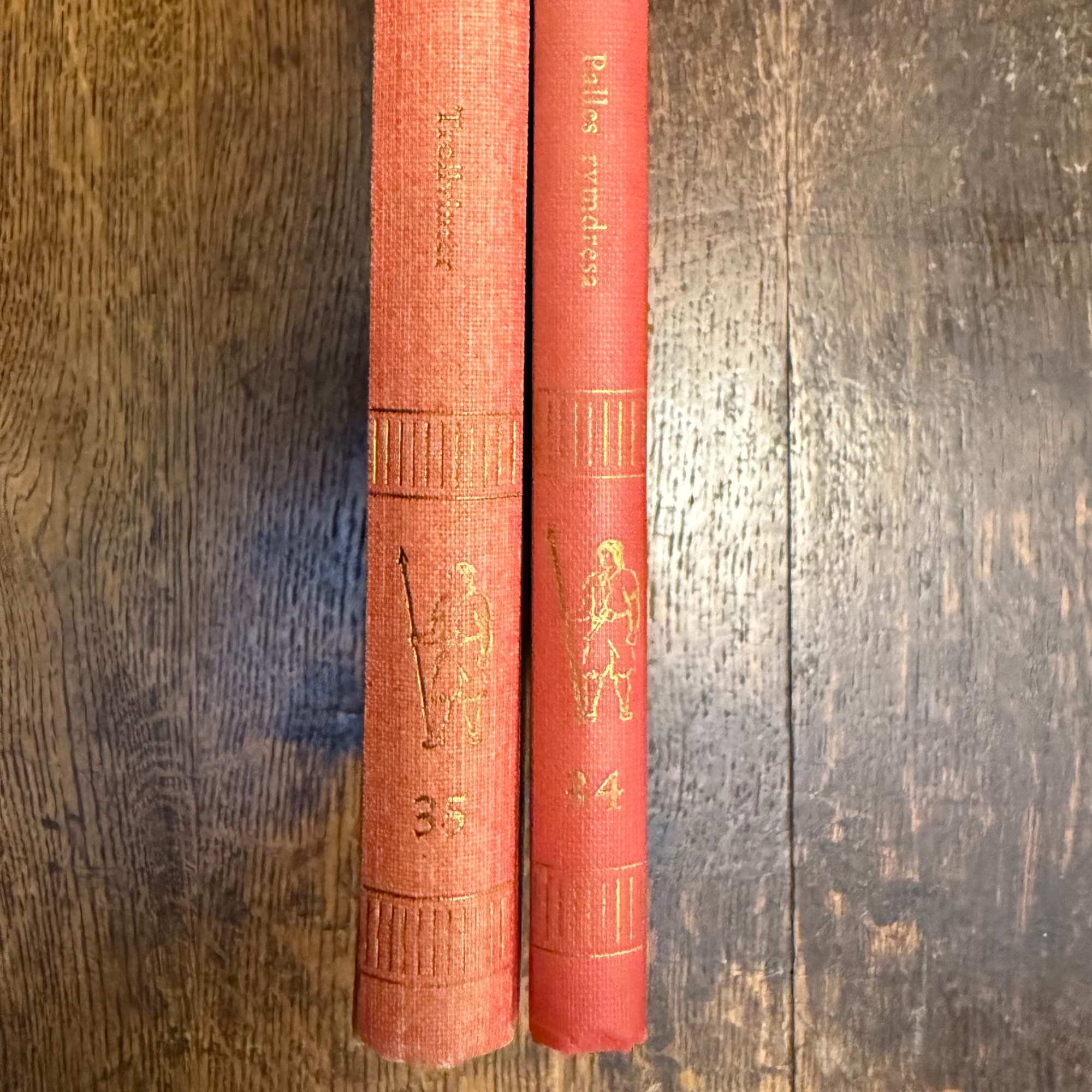 Så, tittar vi på ryggarna ser vi (ja jag vet, det är lite svårt att få en bra bild på guldtrycket. Titta noga.) att Trollvinter till vänster mycket riktigt är 35, som jag hade för mig. Palle till höger har 34. Så, är Palle BÅDE 34 och 35?