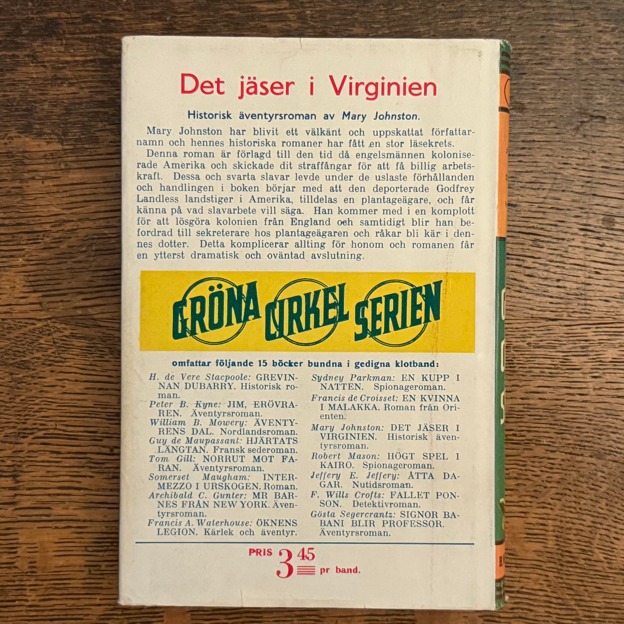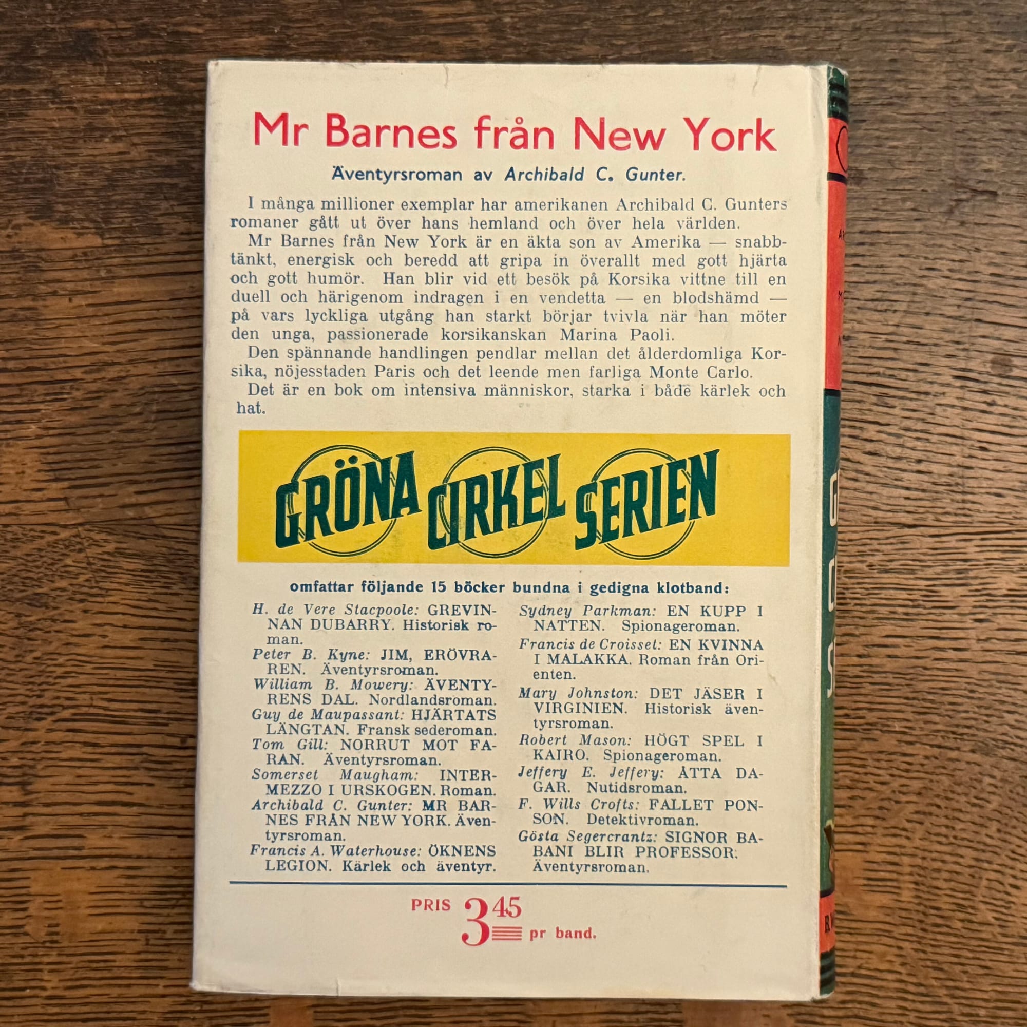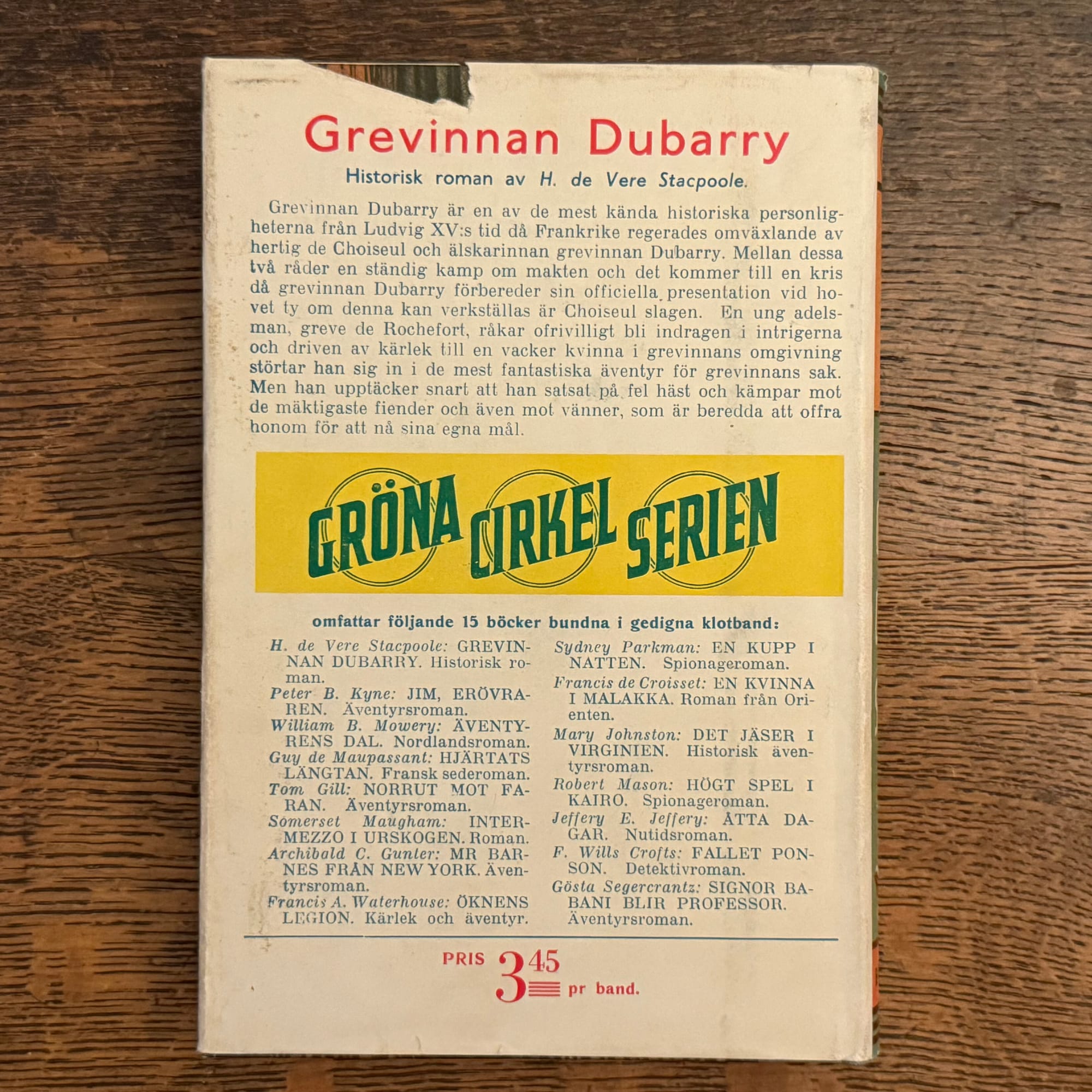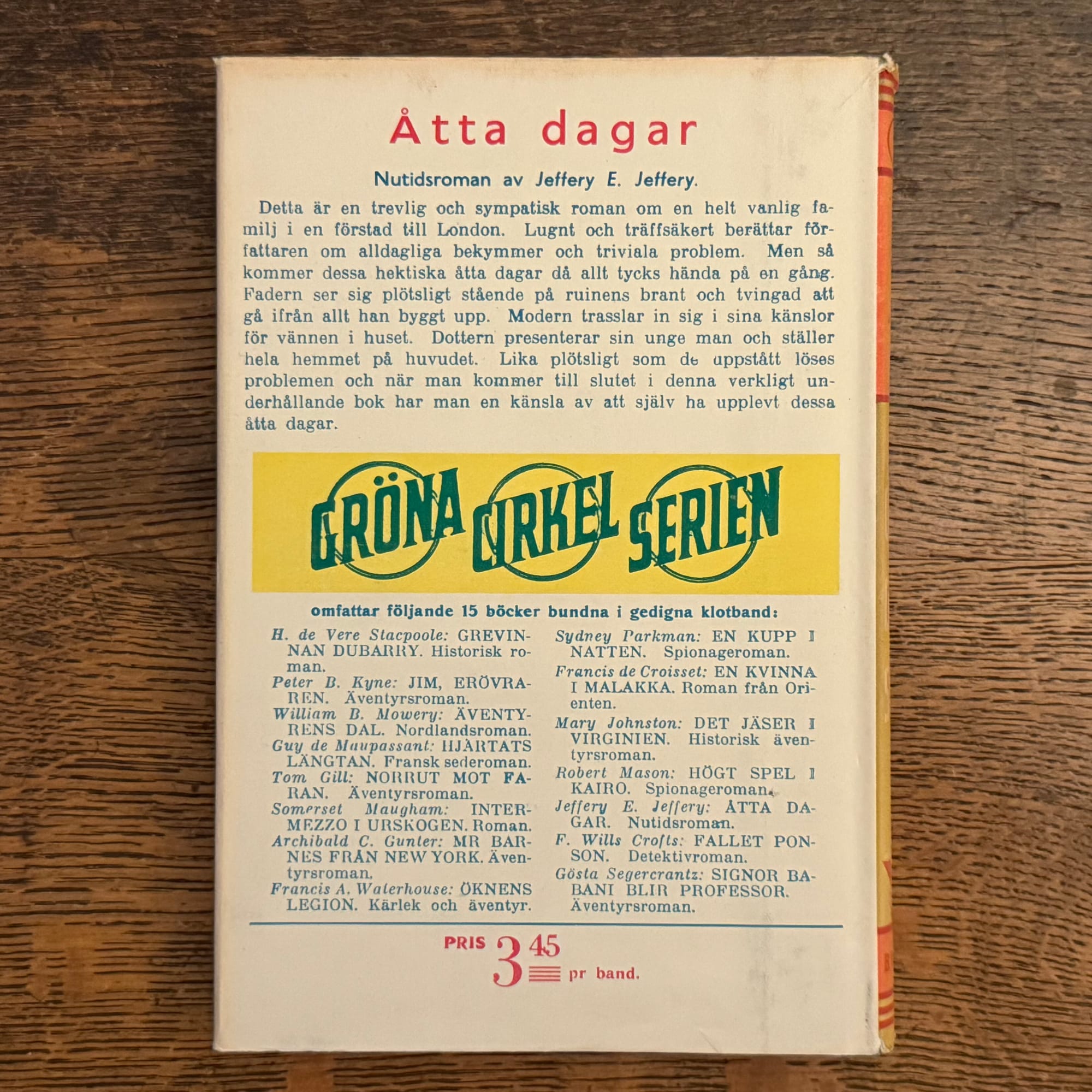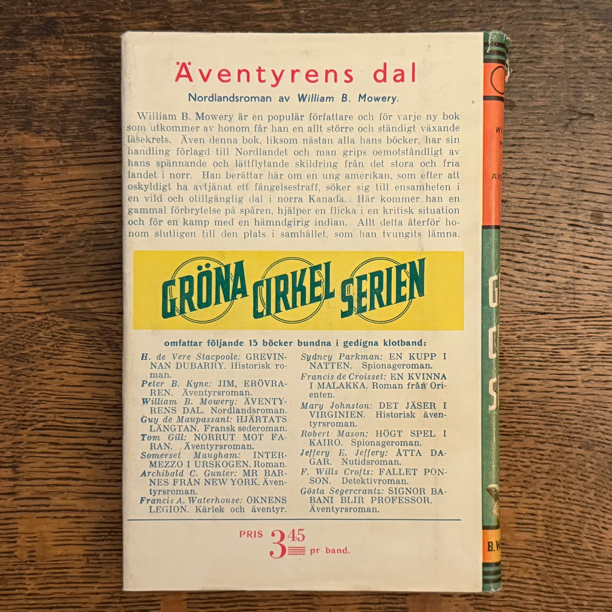 Gröna Cirkel-serien från B. Wahlströms bokförlag utkom 1946-47. En av många nittonhundratals-utgåvor där ett förlag slängde ihop 10-15 böcker med samma pärm, gjorda främst för att se snygga och enhetliga ut i bokhyllan. För att locka till köp i bokhandeln hade de snygga skyddsomslag, tecknade av duktiga illustratörer.