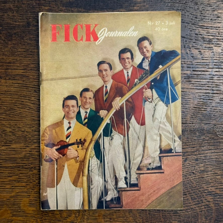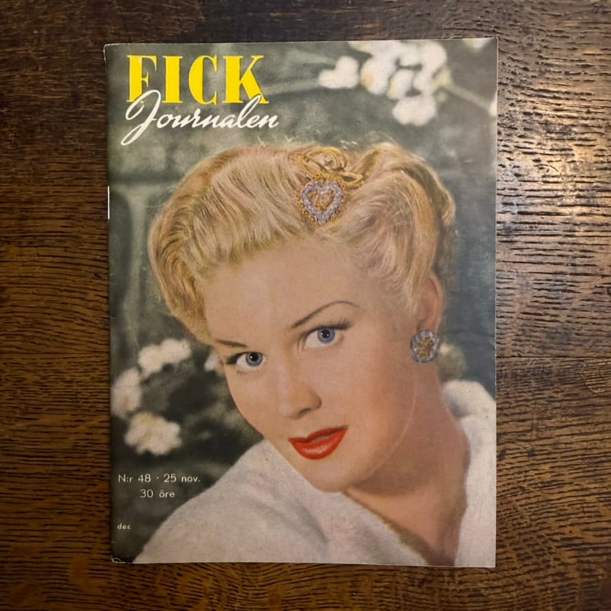 En ny torsdagsserie började: omslag från tidningen Fickjournalen,det sena fyrtio- och hela femtiotalets stora lilla tidning för ungdom. Omslagen är en blandning av populära idoler, kändisar, och av och till ateljéfoton utan närmre uppgift om fotograf eller modell. I den mån tidningen har någon information om omslaget kommer jag att lägga upp den. Här är månadens bilder!