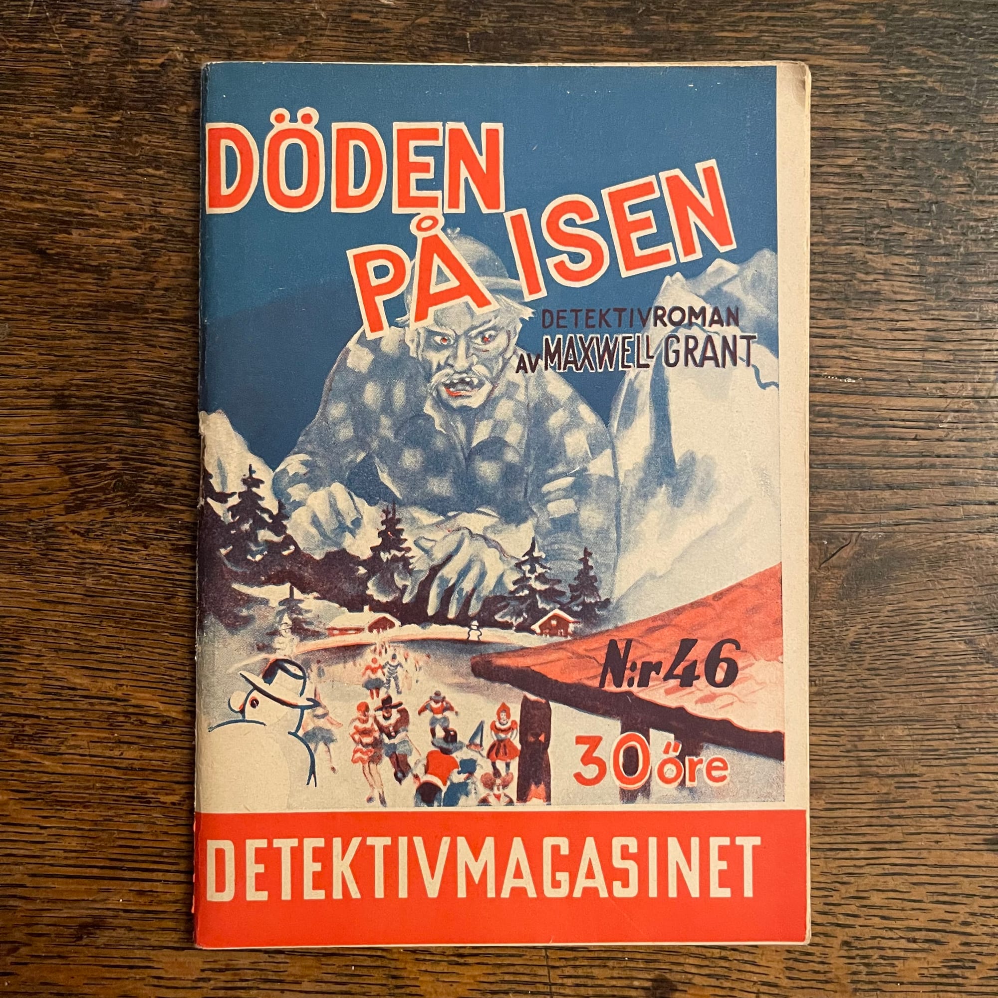 Så vitt jag vet finns det bara fem utgivningar av the Shadow på svenska, samtliga i utgivningsserien Detektivmagasinet mellan 1946-48. Bakom pseudonymen Maxwell Grant fanns den en hoper författare, men oftast var det Walter Gibson. Det kom över 300 historier mellan 1931 och 1949. I USA, alltså, inte här i Sverige. Men man får vara tacksam för det lilla vi fått.